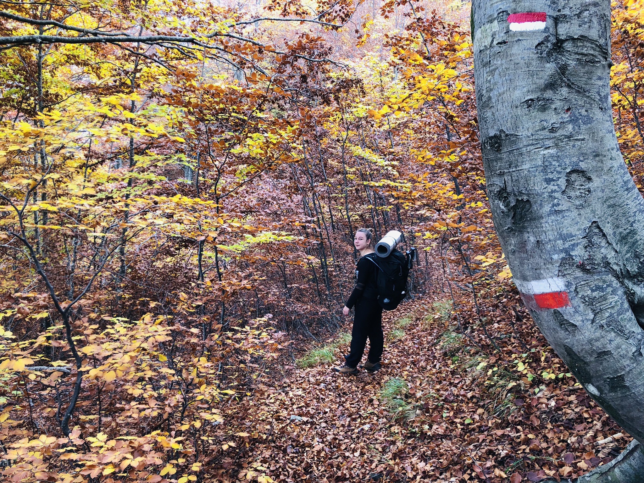 Scarponi impermeabili e ghette: l’umidità e le foglie bagnate rendono i sentieri più scivolosi.
